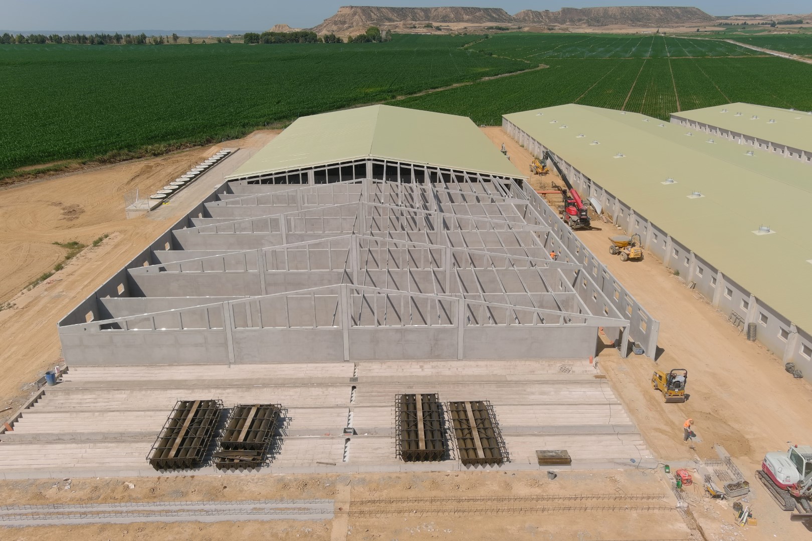 Naves ejecutadas sobre más de 500 pilotes prefabricados hincados en terreno, con una longitud media de 8 m cada uno.